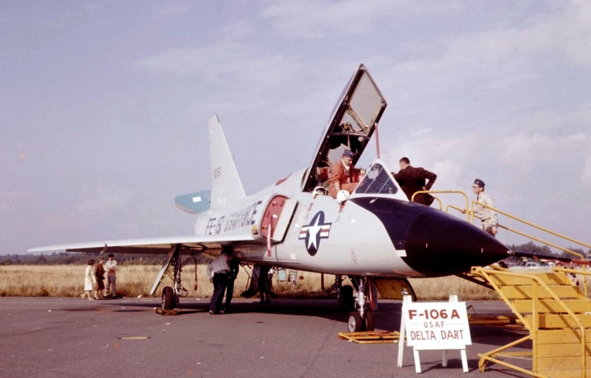 F-106B, 1962 thejivebombers US Air Force January 10, 2018April 21, 2020 1 Minute Never mind what the sign says, this is a two-seater of the 318th Fighter Interceptor Squadron. This aircraft, 59-0151 has a long life ahead, but it will end as an aerial target. Share this: Click to share on X (Opens in new window) X Click to share on Facebook (Opens in new window) Facebook Like Loading... Related Published by thejivebombers View all posts by thejivebombers Published January 10, 2018April 21, 2020