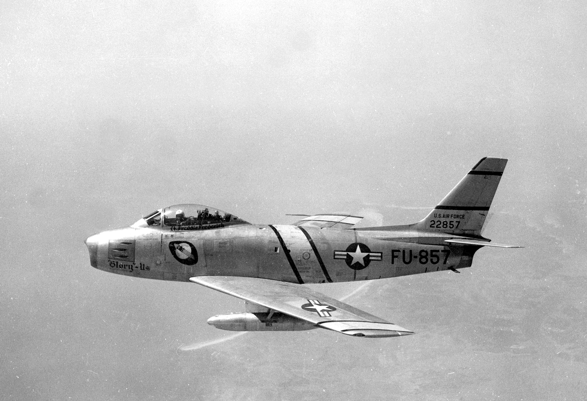 The pilot, Peter J. Frederick, was credited with shooting down two MiG-15’s. (The kills are painted below the canopy) Frederick later flew F-105’s in Vietnam with the 355th Tactical Fighter Wing. Sadly, he was shot down on March 15 1967. His remains were recovered in 2004. The second photo is from the yearbook of the 4th Fighter Interceptor Wing. RIP
