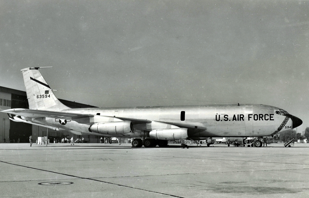 This is one of the so-called “short tail” tankers, a feature found on the earliest 135’s. Photo taken at Walker AFB, NM. Although closed decades ago, Walker is used for many aviation activities (the now former Reno Air Races will soon be one of them). The massive SAC hangar in the background is still in use today.