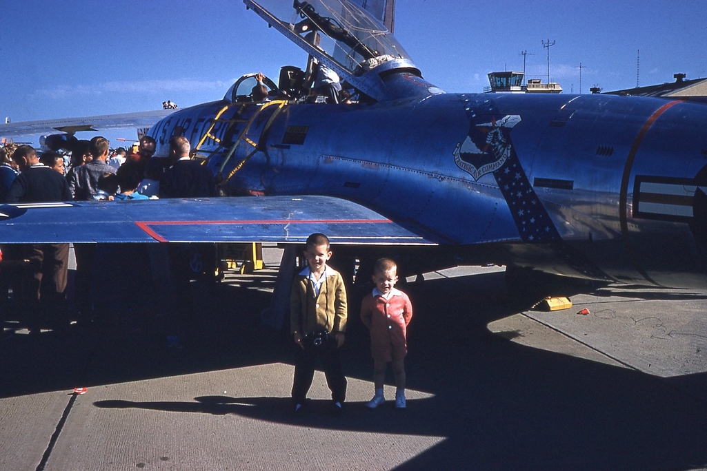 March AFB, 1960 Open House thejivebombers US Air Force June 29, 2019April 21, 2020 1 Minute Looks like it didn’t take much convincing from dad for these two happy boys to pose next to a Strategic Air Command T-33. A B-47 is in the background. March operated two wings of these aircraft during this time. Share this: Click to share on X (Opens in new window) X Click to share on Facebook (Opens in new window) Facebook Like Loading... Related Published by thejivebombers View all posts by thejivebombers Published June 29, 2019April 21, 2020
