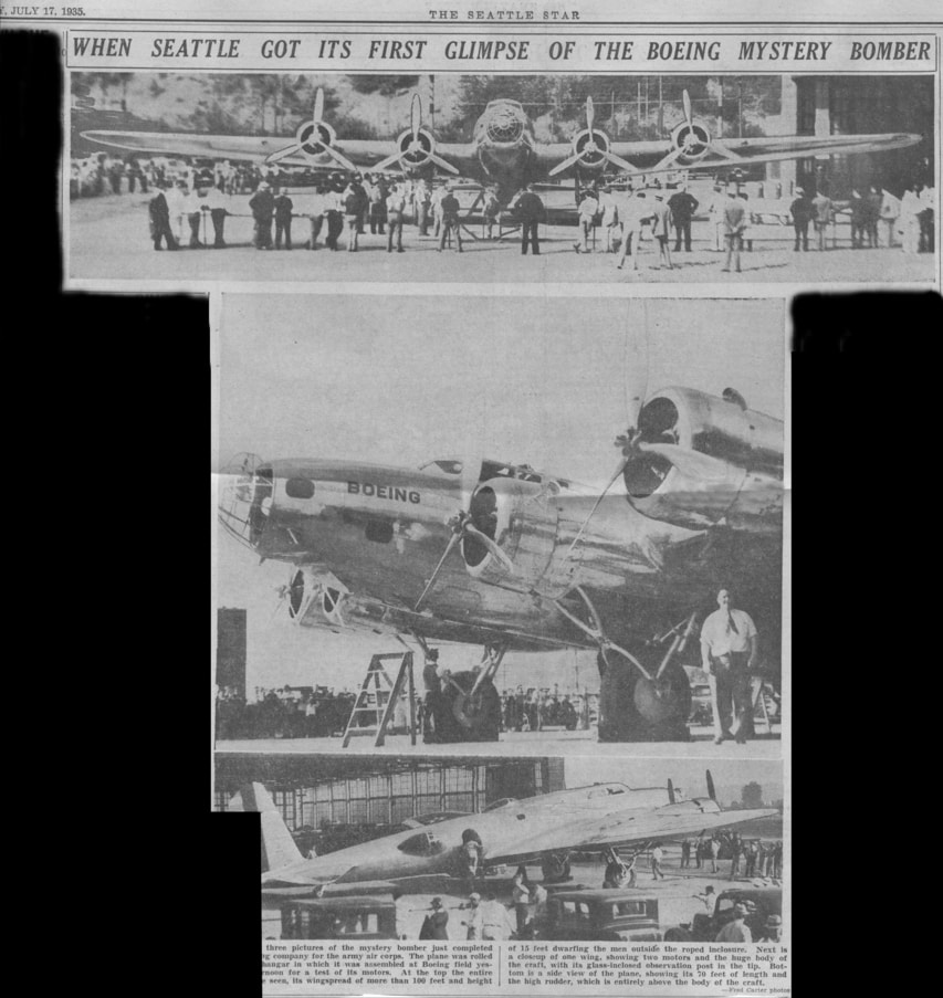 The Seattle Star of July 17, 1935, tells us that Boeing’s “Mystery Bomber” had rolled out the factory door only the day before.