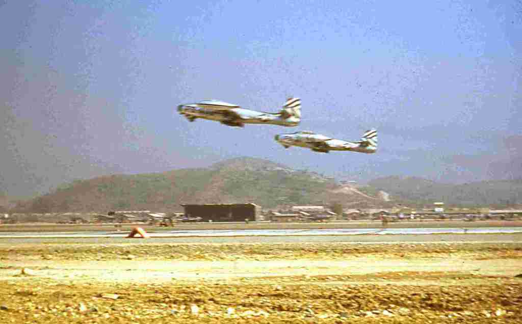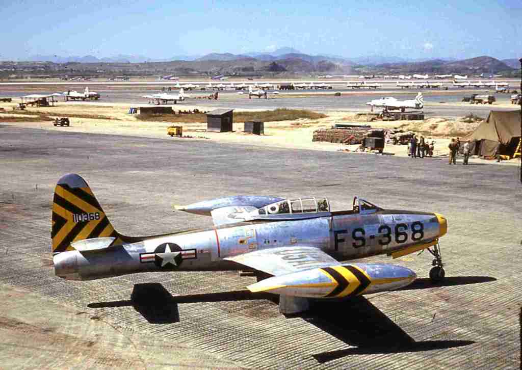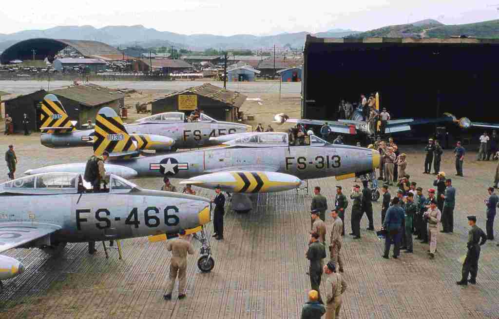 Flightline at Taegu Air Base in 1952. The F-84G, 51-10368, belongs to the 8th Fighter Bomber Squadron, 49th Fighter Bomber Wing.F-84s of the 474th Fighter Bomber Wing, also at Taegu Air Base.