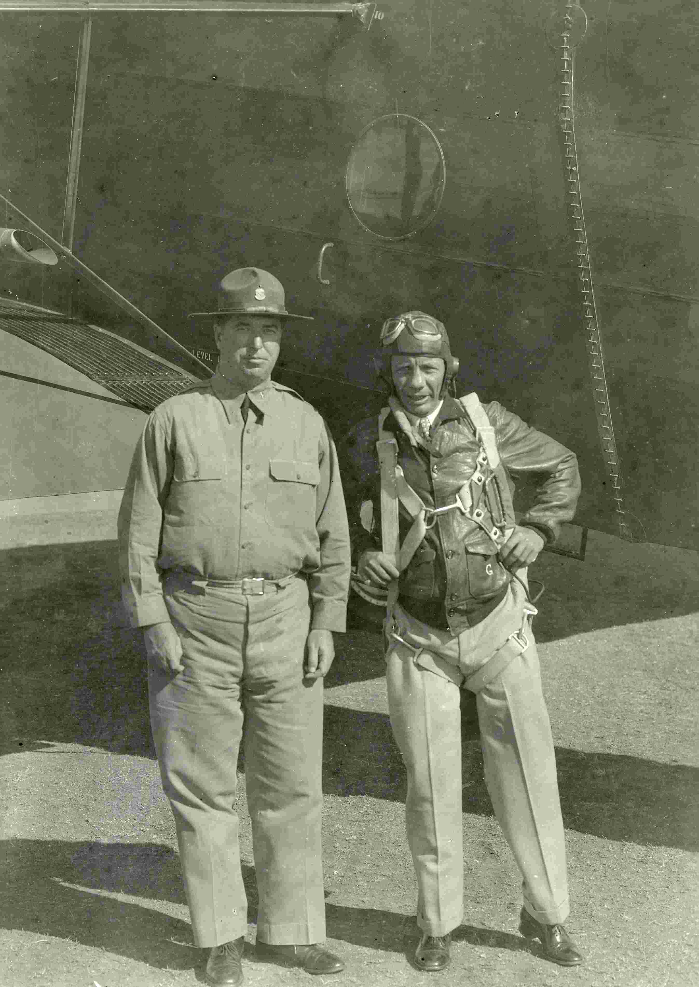 The be-goggled fellow on the left is indeed the pilot, Mr. Jerome Waterhouse (He was also president of Maas Bros. Department Stores). His aircraft of choice looks to be a Brunner-Winkle Bird with a Kinner B5 engine.