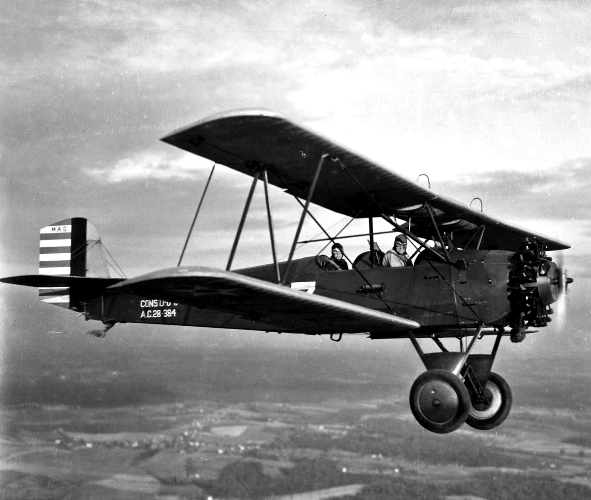 Cruising along in the Depression-era skies of the Northeast United States, an O-17 (28-384) of the Middletown Air Depot, Olmsted Field, Pennsylvania. His tail skid has brought along some of Olmsted’s turf for the flight.