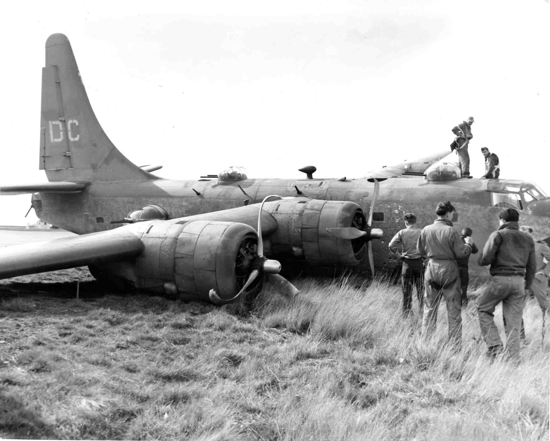 Unfortunately, tragedy struck the next day, June 20th. On that Thursday, a Y10-35 lost a right engine on takeoff and slewed toward the line of tents seen in the photo. Soldiers in the onrushing plane’s path scattered to safety, but at 70 MPH, the aircraft crashed through a fence and struck a parked car, killing three people. The victims, Daniel Krauss, his wife Freda, and two-year-old daughter Donna, had simply stopped by to watch the goings-on at the airfield. A four-year-old son survived, he being with relatives in Washington State. Congress later approved a bill that provided a princely $60 a month for that orphan’s upbringing.