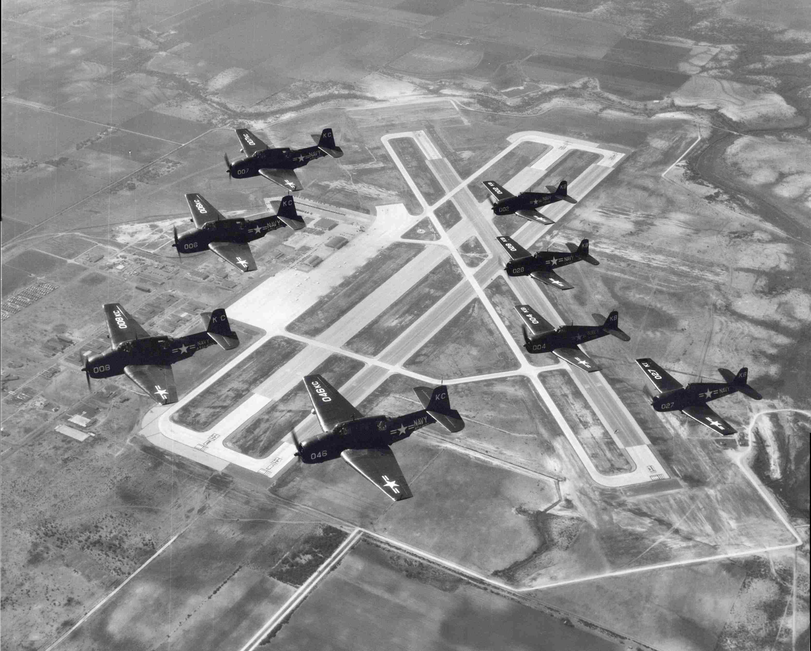 World War II veterans in the Jet Age. When these photos were taken on 23 May 1953, Hellcats and Avengers were starting to show their age but were still providing a valuable service in the training of fighter pilots (Hellcats) and anti-submarine aircrews (Avengers). The aircraft seen here are from Naval Auxiliary Air Station (NAAS) Kingsville, Texas. That base, shuttered since WWII, had been recommissioned due to the outbreak of the Korean War. The aircraft were assigned to Air Training Unit (ATU) 100 and ATU-400, respectively.