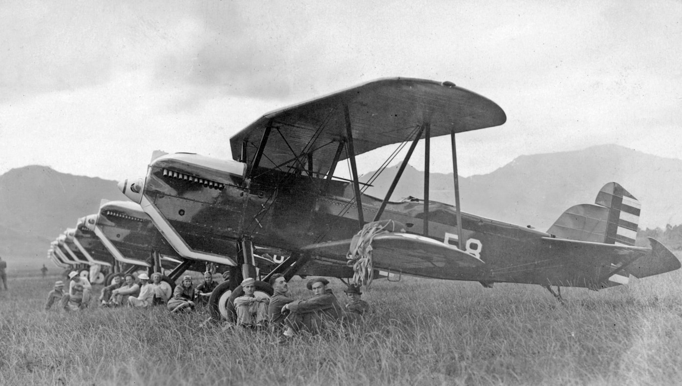 It’s the early 1920s at Luke Field in the Hawaiian Territory, and men of the 6th Squadron take a moment from their busy toils to say “cheese” while posing happily in front of their DH-4s.