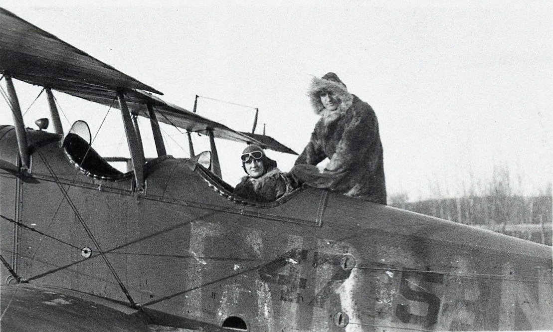 On a side note, Eielson’s passenger is Mrs. Ladessa Nordale, wife of Fairbanks newsman Hjalmer Nordale. An adventuresome and interesting woman, Mrs. Nordale later became a prominent Alaska judge where, among her more interesting cases, was one that involved whether an automobile constituted a brothel.