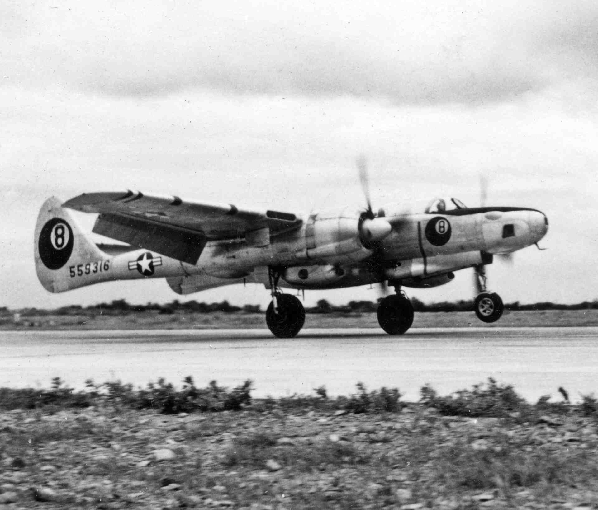 The photo-snapping derivative of Northrop’s much-vaunted P-61 Blackwidow, the F-15A Reporter was dealt by fate an unfavorable hand and did not enjoy the fame of its darker-skinned older relation. First flown in late 1945, with deliveries commencing the following year, the F-15 looked promising, but with the war over and defense spending curtailed, the contract was sharply slashed. Only 36 planes were built. Some were allocated for test purposes, and of the remainder, there was scarcely enough to equip one squadron – the 8th Photographic Reconnaissance Squadron (PRS) of Johnson Air Base, Japan – seen here in the featured photos. The squadron received their F-15s in 1947 and flew them for two years before transferring the surviving aircraft to the 82nd Tactical Reconnaissance Squadron (also at Johnson Air Base), whereupon they were quickly retired.