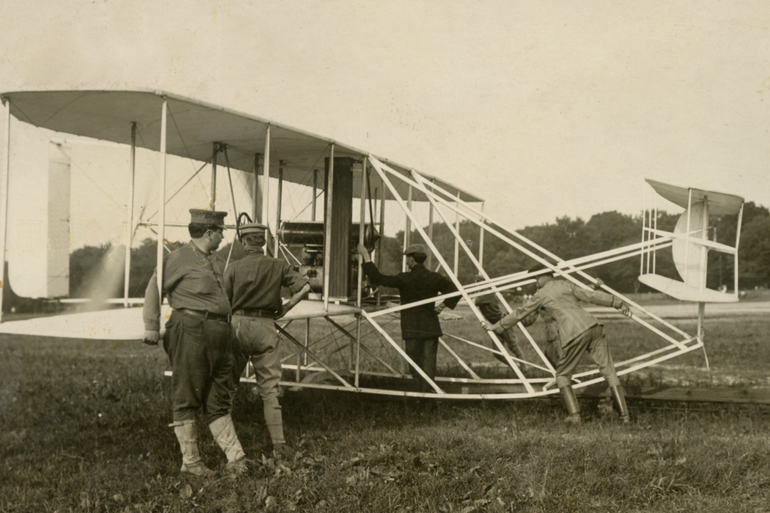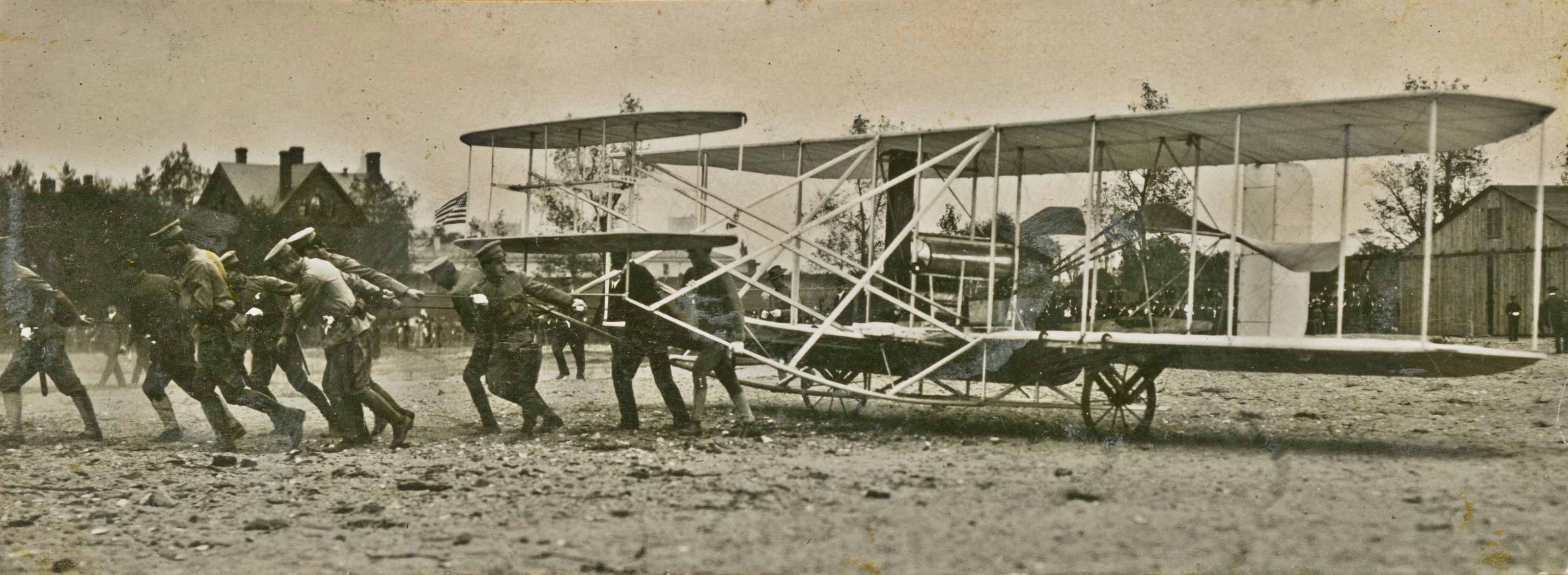 A series of original Wright Brothers photos that I have never seen before. Comparing them with known photos, the first two were taken during the famous trials at Fort Myer, Virginia in 1908. The second photo shows Orville standing in front of the “cockpit” while soldiers restrain the machine which ran at only one speed – full power. This series of demonstration flights ended in tragedy when the aircraft crashed killing the observer, Lt. Thomas Selfridge, and severely injuring Orville.