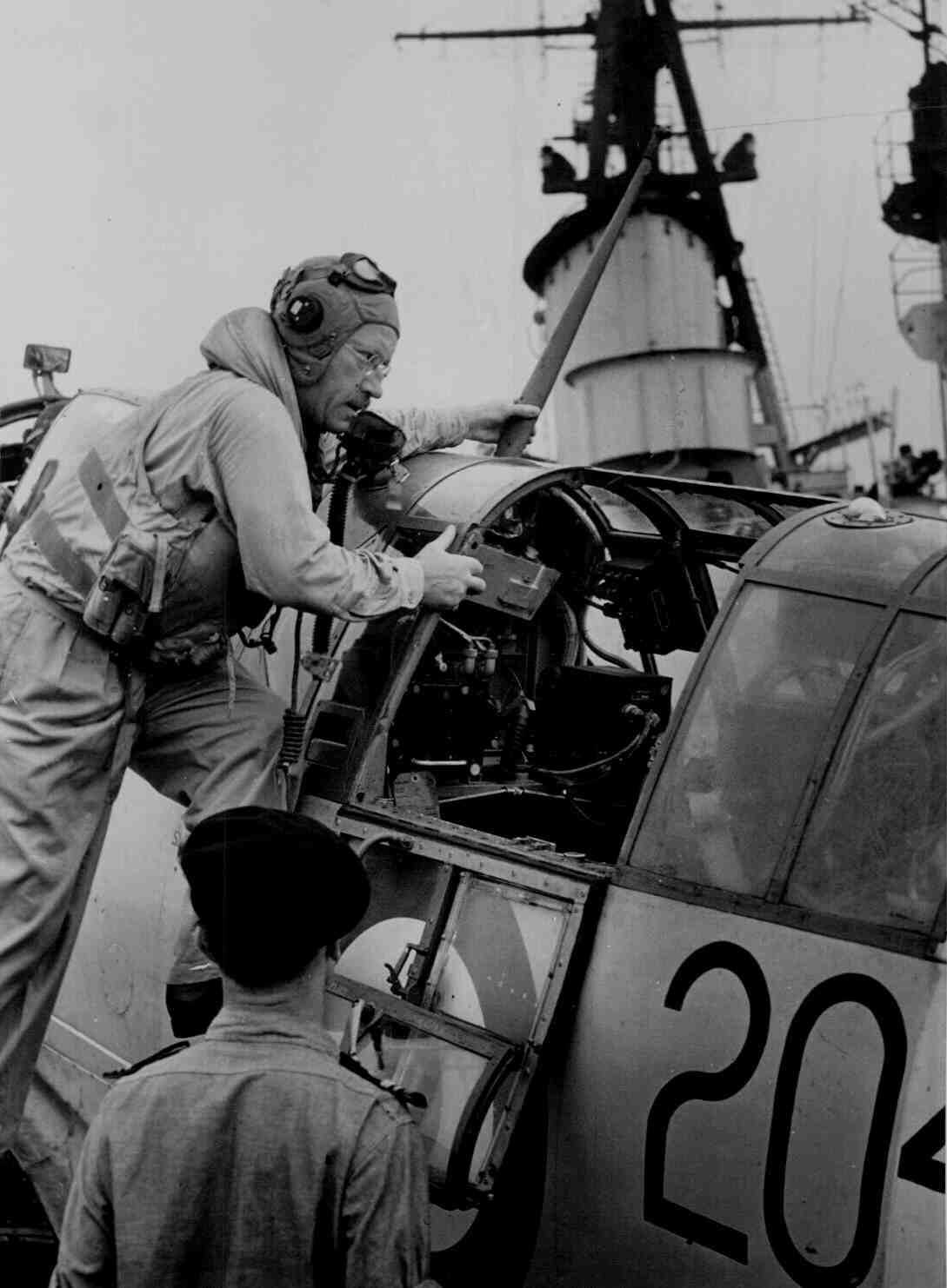 Post-war photo of 33654 and 35594 resting upon the catapults of an Iowa class battleship. “CA” was the code for VO-1C of NAS Terminal Island.