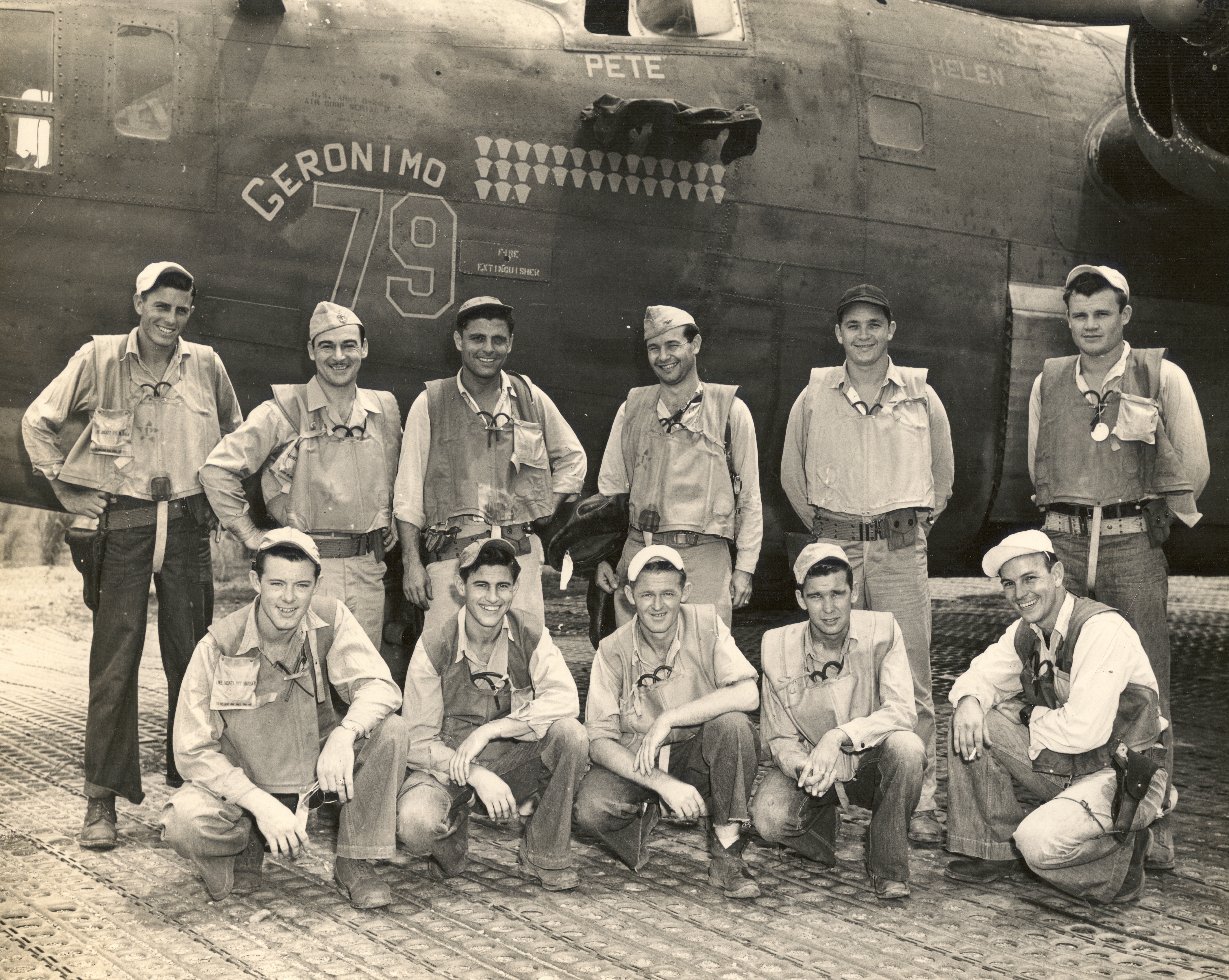 My first thought was that the man on the left was the aircraft’s navigator using a drift sight. (One can be mounted at the waist blisters.) But nope, he has a gun.